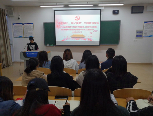 2019年10月17日,经济管理系第三党支部委员会在教学楼D304开展“不忘初心,牢记使命”为主题的教育活动。活动围绕初心、使命和如何密切联系习近平新时代中国特色社会主义思想进行展开,大家都积极的起来表达了自己的初心和使命,并讨论我们如何更好的坚守自己的初心和使命。此次教育活动进一步加强了大家对“习近平新时代中国特色社会主义思想”的学习,增加了大家的党性修养,理论知识和政治觉悟。