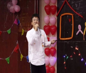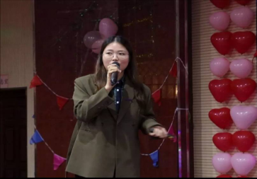 (图为经管系6栋128寝室、1栋416寝室的解说员依照PPT顺序在述说各自寝室的文化美、人文美、友谊美等的话语,他们的寝室温馨而且温暖)