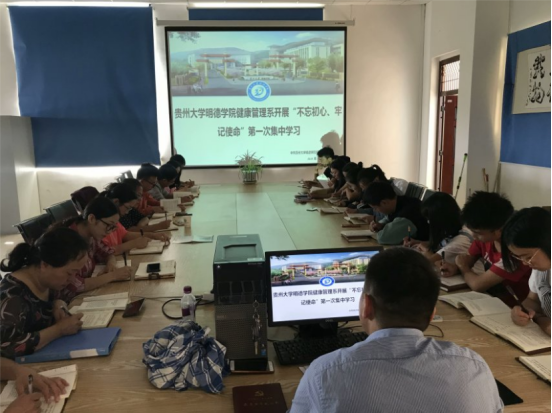 贵州大学明德学院健康管理系党总支开展“不忘初心、牢记使命”主题教育动员大会暨第一次集中学习