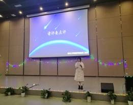 最后是梁川同学给他们的点评,她说到:每一位站上舞台的参赛选手都是很厉害,很棒的,他们在清晨或者傍晚都有过许多次的背稿练习,站上舞台就是一种勇气,超越自我就是一种成功。希望每一次的努力都能有所回报。