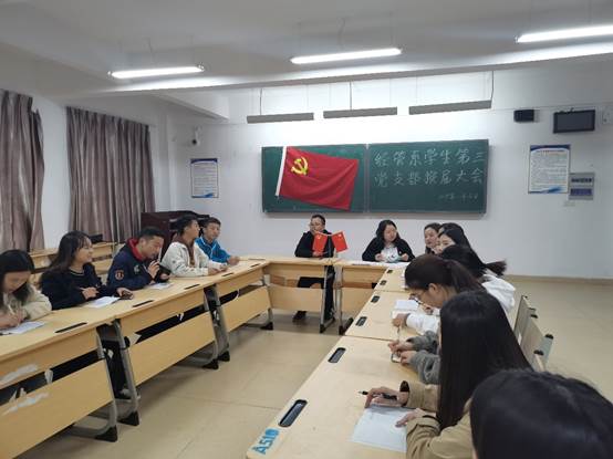 2019年11月13日晚上7点,经济管理系学生第三党支部进行换届选举工作,选举过程由党支部负责人龚美主持。支部书记徐娟做了换届选举工作报告,全面总结了支部的活动开展、自身建设等情况,全体党员对支委的工作给予了高度肯定。然后由龚美同志宣读选举办法及候选人名单,经党员大会无记名、差额投票,计票人蒋仕丹、唱票人何双逢统计票数。根据选举计票结果,赵义远、龚美、吴霞、李林丽同志当选为党支部新一届委员会委员。