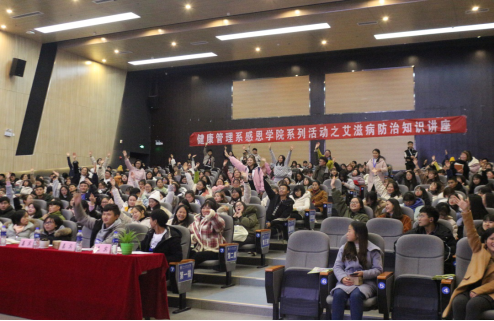 讲座过程中,设置了有奖竞答环节,同学们都很积极地参与到答题活动中,实现了同学们与龙霞老师的现场互动,不仅活跃了现场气氛,进一步加深了同学们对防艾知识的了解