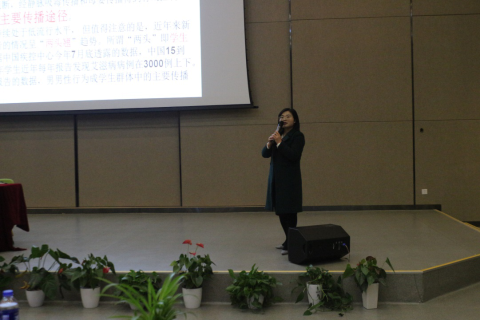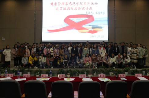 (供稿 龚沙沙/供图 韦漫) 为普及艾滋病防治知识,进一步加强我院学生对艾滋病防治知识的了解和掌握,提高广大师生防控艾滋病和自我保护意识,感恩学院培育和关怀之情,在32个艾滋病日到来之际,系于12月2日晚上19:00在学院图书馆报告厅举办了感恩学院系列活动之艾滋病防治知识讲座,出席本次讲座嘉宾有:学院团委秘书马瑞、我系党总支负责人杨鹏、团总支书记张丽、专职教师王祖艳以及各系350名学生代表,本次讲座由我系系主任助理龙霞老师主讲