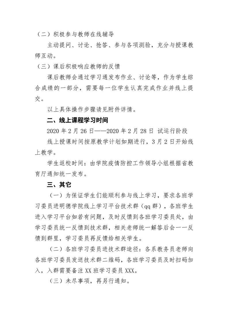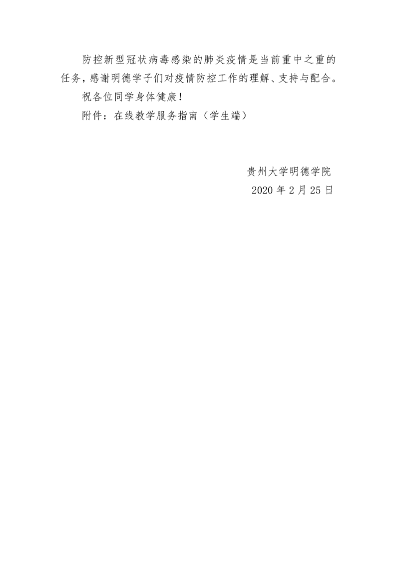 贵州大学明德学院关于2019-2020学年第二学期防控疫情期间学生线上学习安排的通知