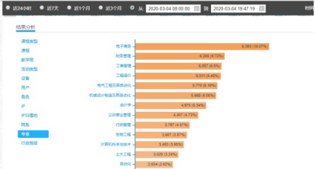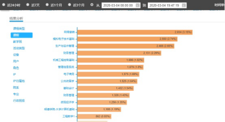 截止3月4日,经管系网络营销课程连续两日保持全院课程活跃度第一,生产与运作管理、财务管理、管理信息系统、电子商务、公共政策学、基础会计、财务管理等课程均保持全院课程活跃度前十名。从专业方面看,经管系电子商务专业持续保持全院活跃度第一。财务管理、工商管理、会计学、行政管理等专业分别位列第二、第三、第七和第九。