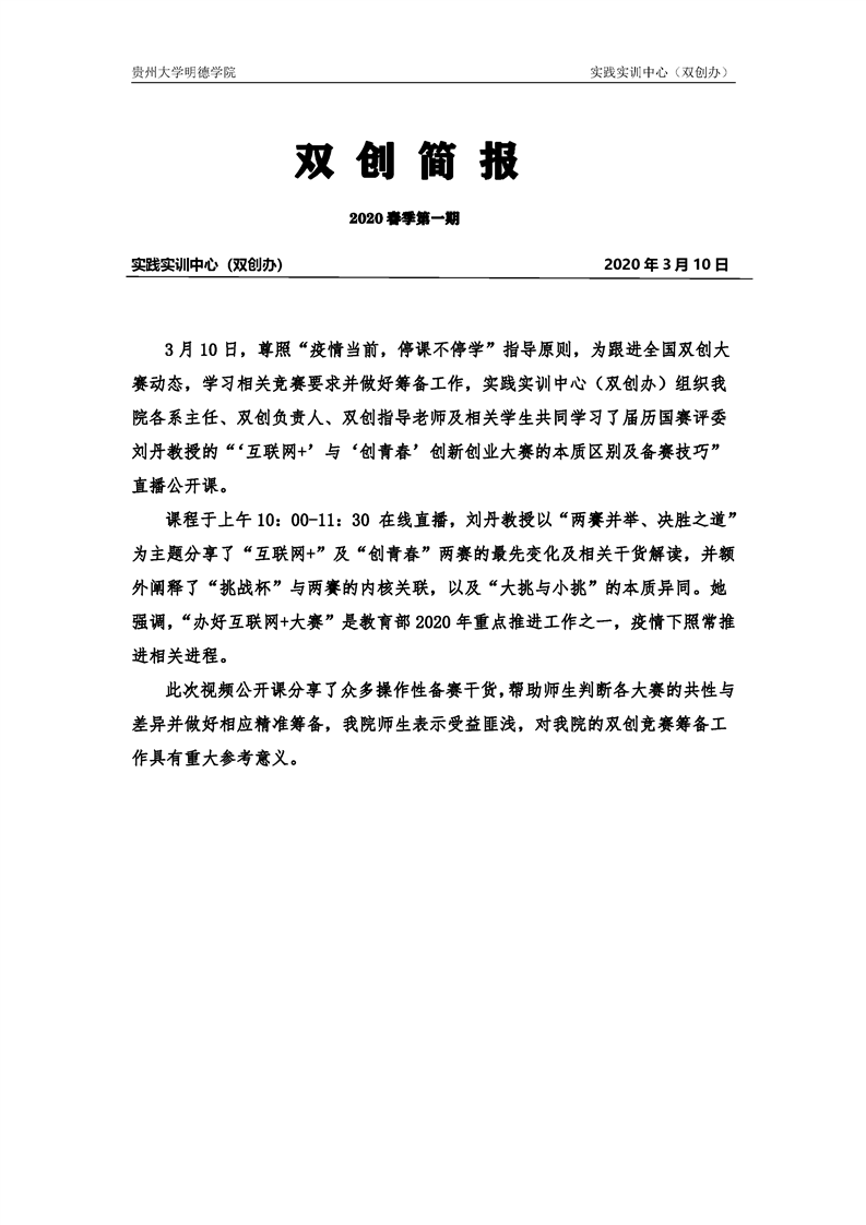 【简报】师生线上学习双创视频公开课