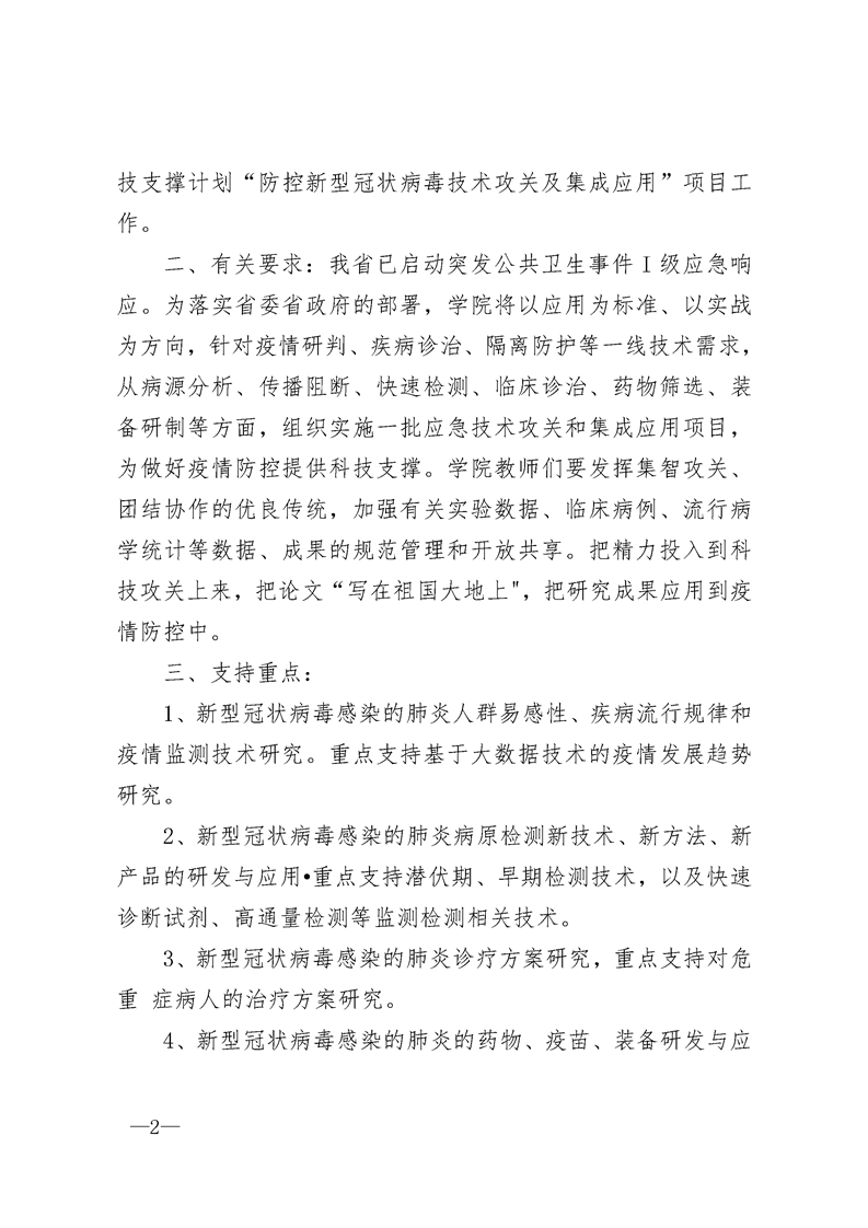 关于组织申报“防控新型冠状病毒技术攻关及集成应用”项目的通知