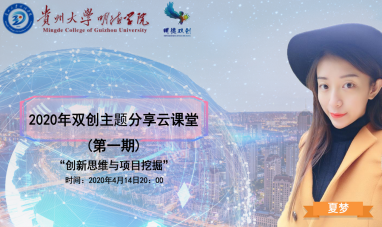 为助力疫情期间工作数字化升级,推进专业教育与双创实践不断线,提升大学生创新创业联动就业的融通能力,由双创办、学生工作处、团委共同组织发起了2020双创线上活动暨双创主题分享云课堂。4月14日晚,课堂正式举办第一期活动,由双创办主任夏梦带来“创新思维与项目挖掘”主题直播课。