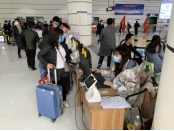 (图为经管系部分学生志愿者在疫情防控期间于所居住地火车站、高铁站、高速路口以及火车上为出行人员进行信息登记和测量体温)