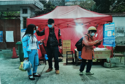 公事1902李素、公事1801龚小欧、环境1902肖宇栋等多位同学在疫情发生后,把祖国的需要当做自己的责任、报名参加了社区的志愿者工作,他们主要负责居住小区门口外来人口信息登记、测量出入,以及小区内部的日常消毒工作。在这个特殊时期,他们深深的感到当一名志愿者工作的艰辛和繁琐,但也让他们从中感受到了只有把寻常的工作落实了,才能汇聚成强大的抗疫力量。