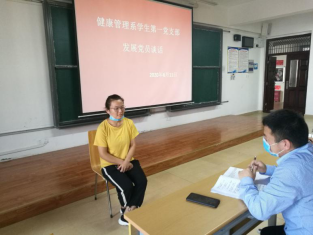 为严把党员入口关,做好发展党员工作,2020年6月11日下午16:00,健康管理系党总支负责人杨鹏老师与发展对象的谈话在教学楼F404开展,共有12名发展对象参与本次谈话。
