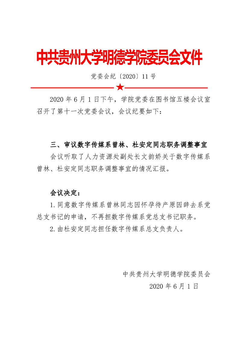 关于数字传媒系曾林、杜安定同志职务调整事宜