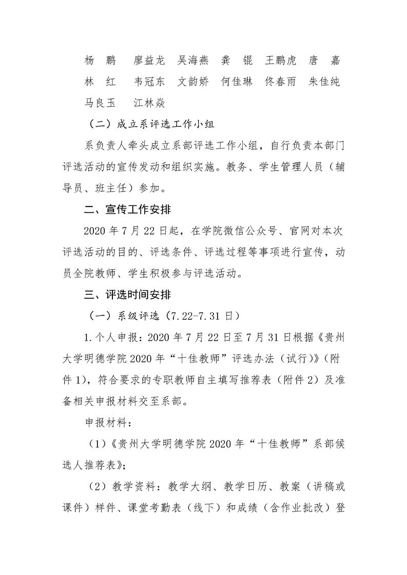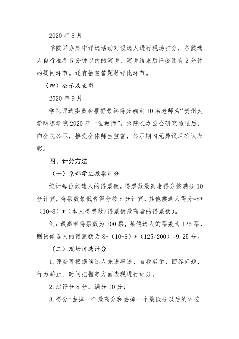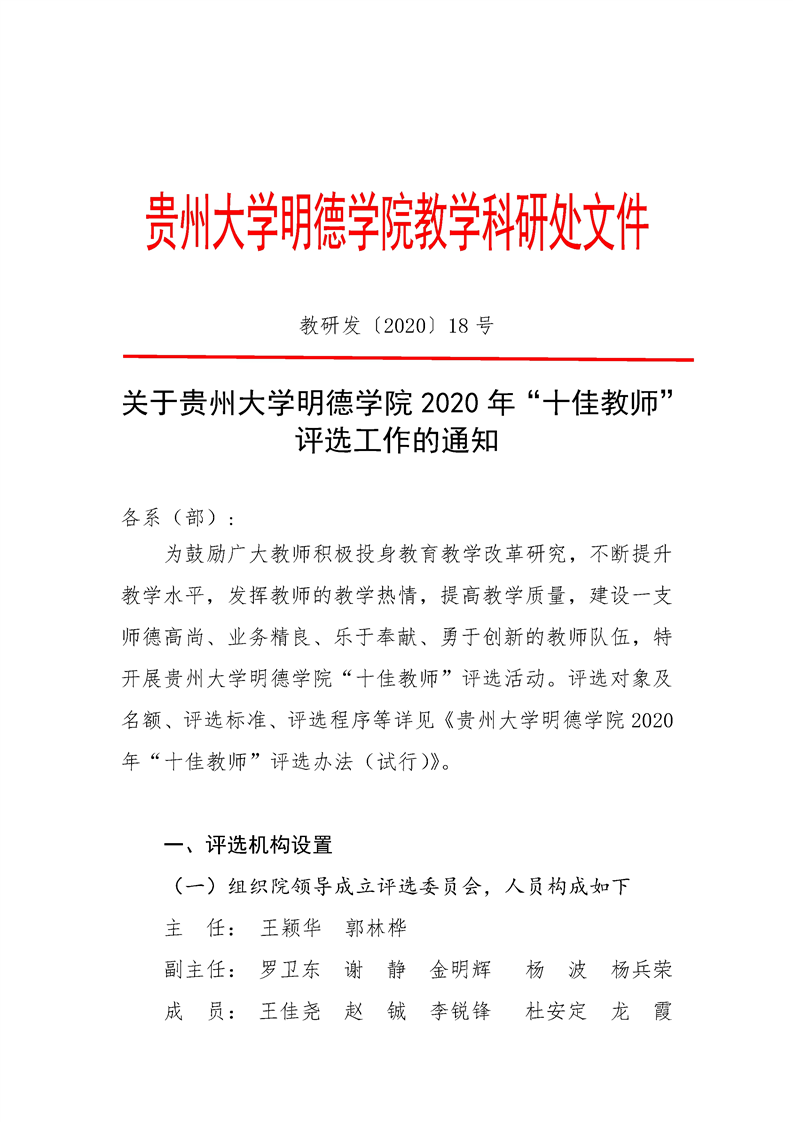 关于贵州大学明德学院2020年“十佳教师”评选工作的通知