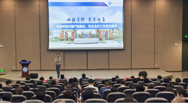 邱总围绕“明德学院开展产教融合、校企合作工作规划”进行解读,先是重申学院办学目标、办学模式的确立,而后强调设立双创办是推动学院办学目标及办学模式实现的战略机构,最后对校企合作模式、学院转设的发展、教书育人准则等提出新要求。