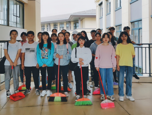 本次打扫的地点主要是F栋教学楼一楼至五楼的教室、楼梯及过道,大家分工协作,一个同学拿着扫帚,另一个就用工具承装,同学们都在互帮互助中感受集体的力量。在阳光下同学们认真清扫,良好的精神风貌为凉爽的秋天增添了一份温暖。热火朝天的劳动现场,充分展现了健康学子阳光向上,精神饱满的良好状态。