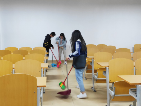 各位同学在辅导员老师带领下共同行动,对教学楼公共区域卫生进行打扫清理,使各教室的卫生面貌焕然一新。每位同学都在自己的岗位上尽职尽责,不仅能够认真的完成自己的本职工作,还能帮助其他同学完成。以“劳动课”为载体,积极开展这样的实践教育活动,对于推进学生素质教育、养成学生优良品质,加强和改进学生思想品德教育工作具有十分重要的意义,也是培养德、智、体、美、劳全面发展学生的基本要求。
