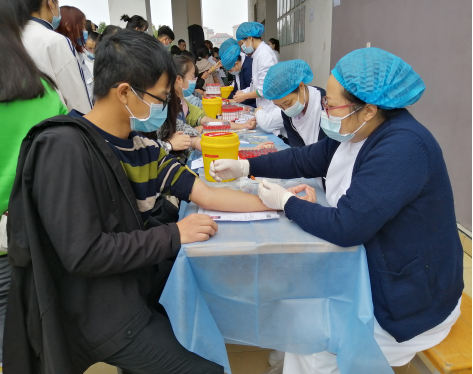 在抽血的现场中,同学们非常有胆量,有序的排队,来到护士面前,卷起袖子,伸出左手,医护人员对每个学生进行认真仔细的检查,并对体检的结果做了详细的记录,同时还向一些学生提出了有针对性的合理保健意见。