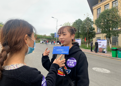 新闻网讯(供稿/经济管理系 罗一檾 供图/经济管理系 张媛 燕燕 艾晓霞 侯祥丹)10月9日早上经管系新生正式报道,我系300多名志愿者参与迎接新生。虽然天公不作美,但是并未影响到志愿者们迎接学弟学妹们激动的心情。在寒风中,每名志愿者都坚守在自己的岗位上,丝毫没有松懈。