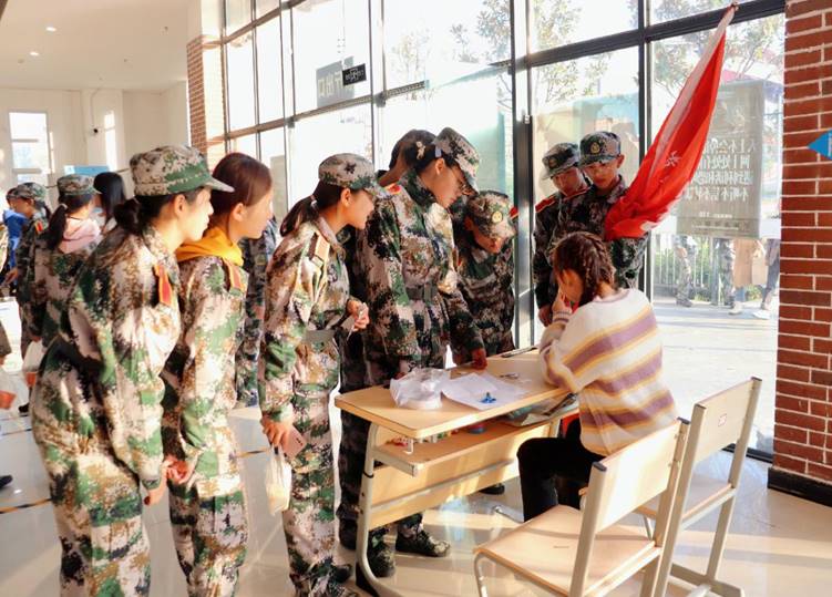 (图为志愿者引导同学们兑换奖品)
