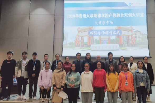 11月10日,由双创办、健康系主办的2020年贵州大学明德学院产教融合双创大讲堂之大健康专场在明德学院图书馆报告厅举行,贵州安迪传统医药研究所所长、贵州安迪医疗设备公司董事长、贵州黔郡艾公司董事长、国际标准化组织中医药技术委员会中方专家何顺峰应邀主讲,学院副院长杨波、健康系主任龙霞、双创办副主任夏梦等教师与各系学生到场听讲。