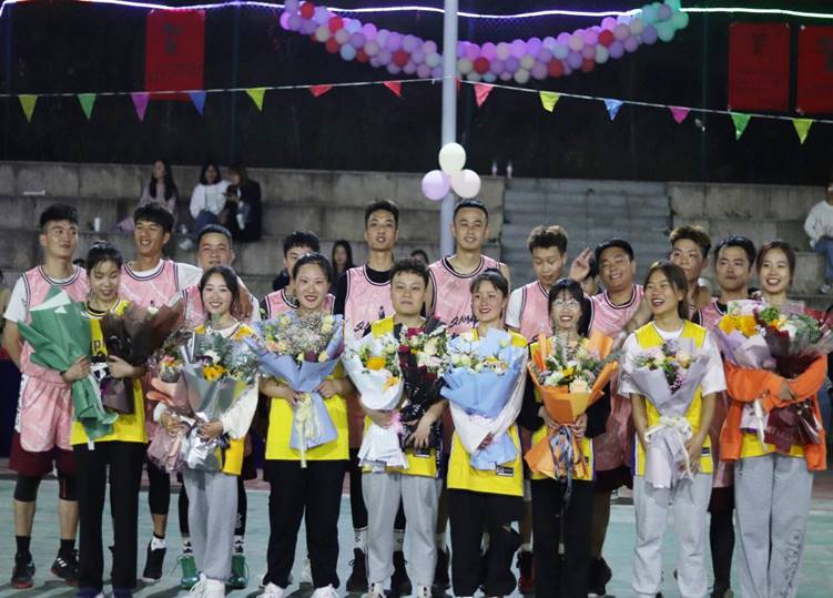 (图为本次篮球赛男子组、女子组冠军合影留念)