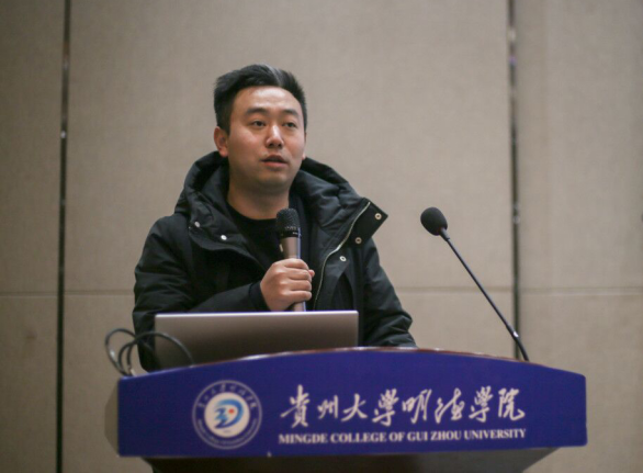 为推动大学生专业能力与创新创业能力有效融合,助力明德学子成为创新型、复合型、应用型技术类专业人才,我院长期举办“产教融合双创大讲堂”系列主题活动,邀请各行业企业家、专家等进行主题分享,让大学生提前了解社会产业的发展状况和创业就业途径,感受和学习企业家开创事业的历程和思想力量。12月2日,在学院图书馆二楼报告厅圆满举办了双创大讲堂之新媒体专场,百度(贵安)创新中心总经理朱莹、贵州天雄汇壹影视科技有限公司总经理王鑫钰受邀主讲。