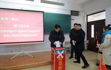 第二阶段第一项议程,通过表决《选举办法(草案)》;第二项议程通过监票人、计票人名单;第三项议程选举中共贵州大学明德学院信息系总支部委员会委员。