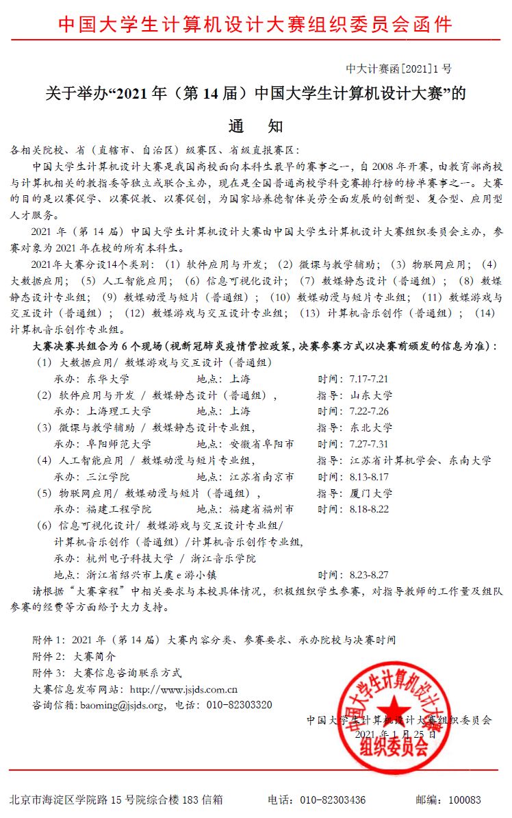 【竞赛】关于2021年(第14届)中国大学生计算机设计大赛的通知