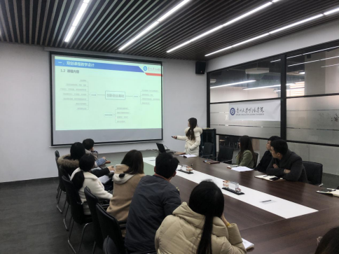 双创办罗晓梅老师就双创教育背景、双创课程体系建设、教学设计、结课设计等方面作重点解读,阐释了双创教育需紧密融入专业教育的政策背景,并宣讲双创教育结合双创竞赛实践的教学模式,以历练师生共进步,培养出创新型、应用型、复合型人才。
