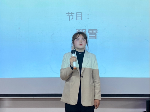 为了缓解大家等待公布各参赛班级成绩的紧张氛围,由文艺部部员带来歌曲《飘雪》,将活动现场紧张的气氛一下子变得轻松愉快起来!