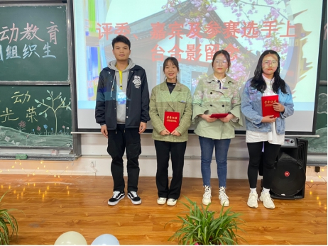 最后,主持人宣布获奖班级的名单,获得第一名的班级是环境2001班,获得第二名的班级是环境2002班,获得第三名的班级是食品1902班,获得最佳解说员的是环境2001班的龙静同学,由我系学生会组织部负责人黄富华为他们颁发荣誉证书,嘉宾与参赛人员的合影留恋。