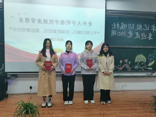 (供稿/黄杰 供图/宣传部)为深入学习贯彻习近平总书记视察贵州重要讲话精神,结合深入开展党史学习教育,深刻把握中华民族从站起来、富起来到强起来的历史逻辑、理论逻辑和实践逻辑,增强对中国共产党为什么“能”、马克思主义为什么“行”、中国特色社会主义为什么“好”的认识和理解。我系于2021年4月26日19:00在F307教室举办以“牢记殷切嘱托、忠诚干净担当、喜迎党百年”为主题的演讲比赛。莅临本次活动的嘉宾及评委有健康管理系团总支学生会第一副书记刘章贵、健康管理系团总支学生会负责人居荣萍、健康管理系团总支学生会负责人文玉春、健康管理系团总支学生会组织部负责人黄富华、健康管理系团总支学生会组织部负责人陈玉德、健康管理系团总支学生会组织部负责人张福洪、健康管理系团总支学生会办公室负责人胡志超、健康管理系团总支学生会宣传部负责人潘丽、健康管理系团总支学生会素拓部负责人杜念洁。