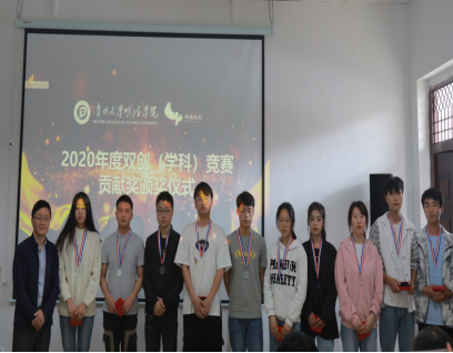其后,各系双创负责人老师分别宣读各系获奖团队名单并进行竞赛贡献颁奖仪式,由罗卫东常务副院长及杨波副院长分别为获奖学生代表颁发双创学科竞赛贡献荣誉奖章。