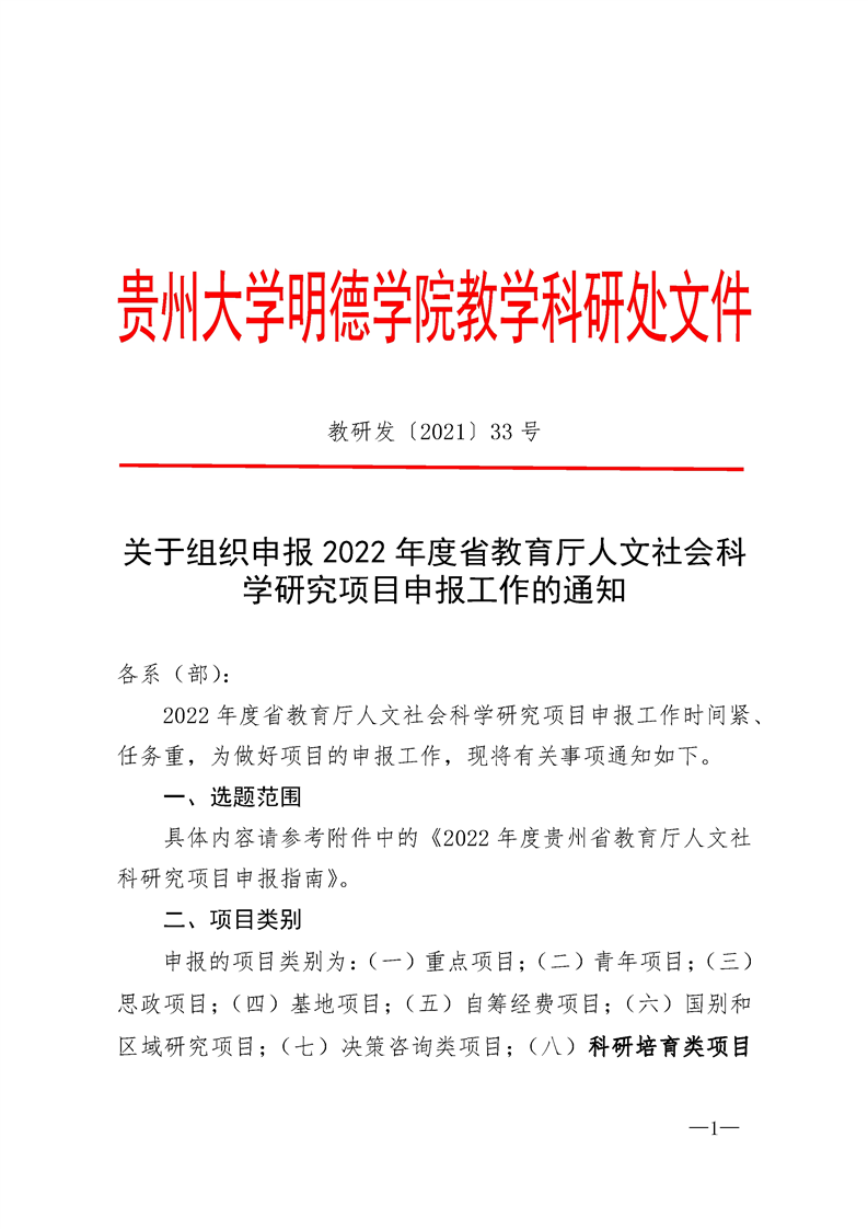 关于组织申报2022年度省教育厅人文社会科学研究项目申报工作的通知