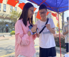 10月2号清晨,我系志愿者就积极在活动地点布置场地,开始晨辉国庆之旅。活动设置答题竞猜环节及现场猜红歌环节,答对的师生员工获得我系准备的精美小礼品一份。留校师生、甚至路过的食堂阿姨纷纷参与到答题猜歌中,现场气氛热烈欢快。