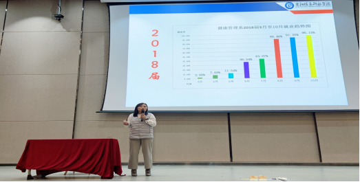 新闻网讯(供稿/供稿 健康管理系)为庆祝中国共产党建党100周年,进一步推动本科毕业生就业指导工作,帮助毕业生了解就业形势,提升就业素质,深入开展“我为同学办实事”实践活动,把党史学习教育成果转化为服务同学的动力,踏踏实实为同学办实事、办好事、解难事,2021年10月20日16:00,贵州大学明德学院健康管理系在图书馆报告厅开展了“我为同学办实事系列活动之就业宣传指导”主题讲座。本次讲座由健康管理系党总支负责人刘圣南老师主讲,本系19级、20级学生参与了本次讲座。