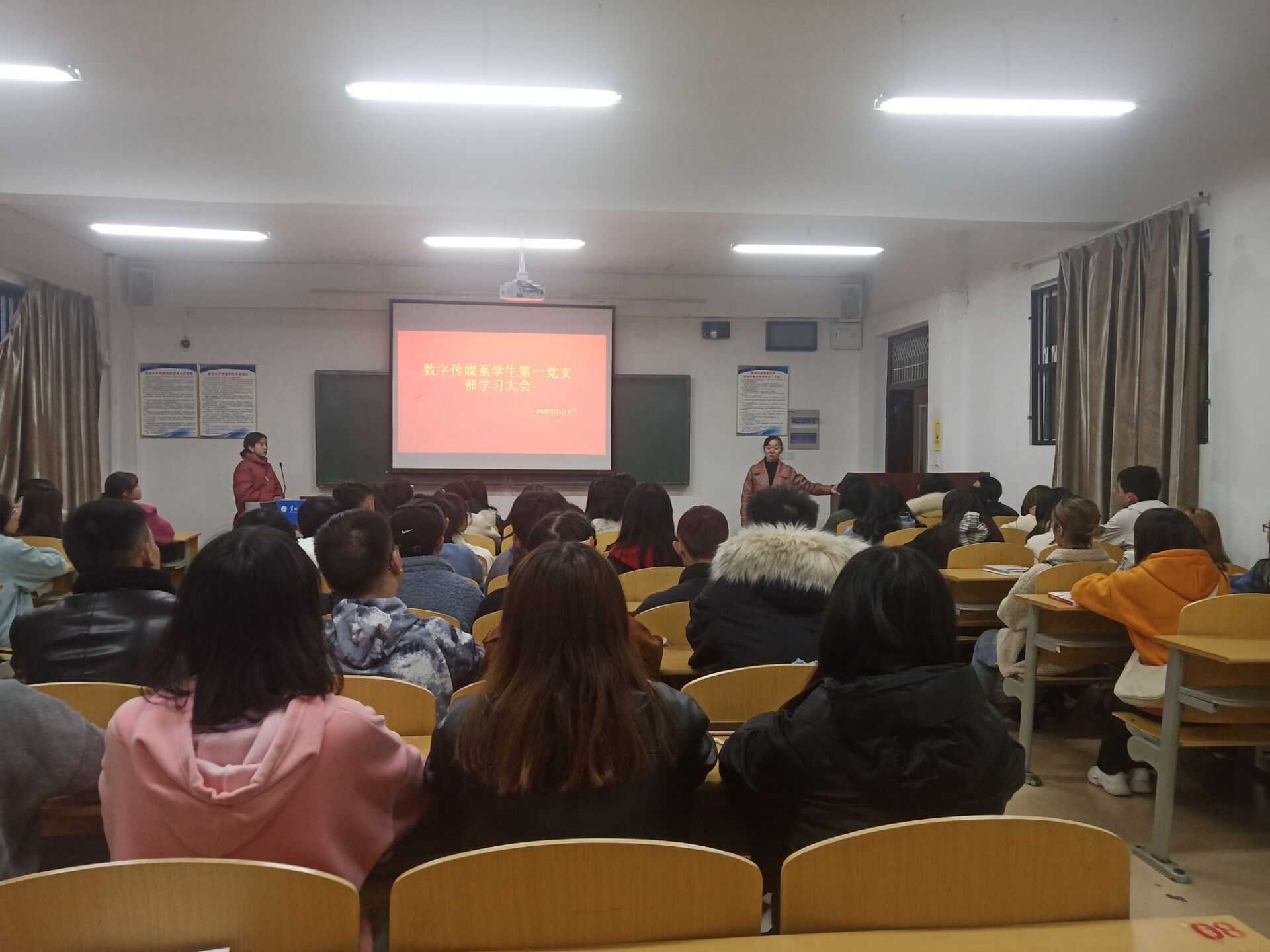 2020年11月4日下午18:00,数字传媒系学生第一党支部在土木楼D304开展关于党规党纪的学习大会,此次参会人员有数字传媒系学生第一党支部第十二期发展对象、第三十二期和第三十三期入党积极分子。