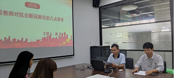 党课以《高校教师对抗击新冠肺炎疫情的几点思考》为主题,从新冠肺炎疫情爆发以来,在学院党委领导下,坚持学习贯彻习近平总书记关于疫情防控工作系列重要讲话精神和中央有关决策部署精神。虽然学生已经正常返校,但新冠肺炎疫情对于高校来说还是一场严峻的挑战,若现与新冠肺炎相遇,挑战则愈发艰巨。当前为新冠肺炎的常态化防控时期,因此我们更需要把好疫情关,防止疫情扩散蔓延。通过此次疫情我们应当看到自己的短板与不足,作为党员同志更应该发扬共产党员先进模范作用,不辞辛苦,勇挑重担,尽职尽责的完成教育教学工作。