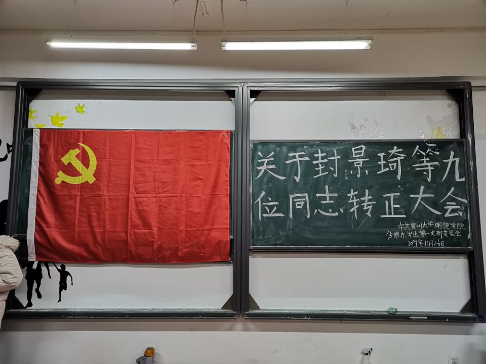 2019年11月26日晚上19点整,传媒系学生第一党支部在传媒楼C211开展关于封景琦九名预备党员的转正大会,此次转正的是第七期预备党员,分别是封景琦、唐海俊、陶珍秀,曾倩、吴强、潘夒、陈先艳、李鹏、蔡国周。莅临本次会议的有传媒系党总支副书记曾林同志、传媒系学生第一党支部书记徐娟同志、传媒系学生第二党支部书记谭琼同志以及拟转正预备党员的入党介绍人等。