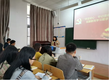 会议进行到第二阶段,由传媒系学生第一支部书记徐娟同志作“不忘初心,牢记使命”主题教育学习要求及安排。
