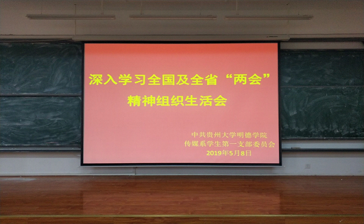 2019年5月8日12:10传媒系学生第一支部委员会在C208教室开展了主题为“深入学习全国及全省“两会”精神”的组织生活会。