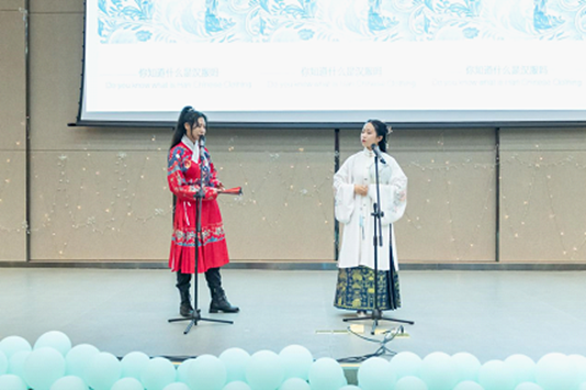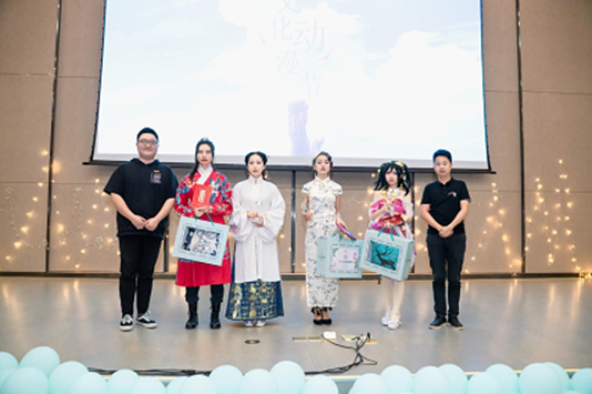 首先映入眼帘的是各具特色的服装展,她们的服装或高贵端庄、或安然静谧、或简静清美,或别出心裁,参赛人员的一颦一笑,举手投足间,尽显服装深厚的文化底蕴和独特魅力。经过服装知识普及和精彩的比拼后,数技1702班邓文静带来的cosplay获得服装最佳展示奖,艺科1702班童婷团队的汉服展示获得服装最佳解说奖,艺科1701宋晓娅的旗袍解说获得服装最佳人气奖。