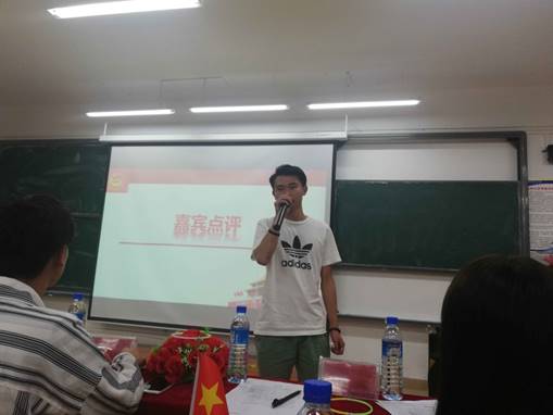 主持人宣读完评分细则,解说正式开始。选手们着装整齐,精神饱满,展现出青年一代的斗志,以及作为新时代青年,实践自我、践行自我的五四精神。一场场精彩的解说,体现出青年一代的精神风貌和对五四运动的深入认识。电气系组织部部长、土木系组织部部长分别为第一小组和第二小组进行点评,指出选手的不足之处并提出建议,让参赛选手受益匪浅。经过精彩的角逐和展示,数技1702班荣获第三名,数技1801、艺科1801并列第二名,网新1801班夺得第一名,王高金同学以出色的解说荣获最佳解说员。