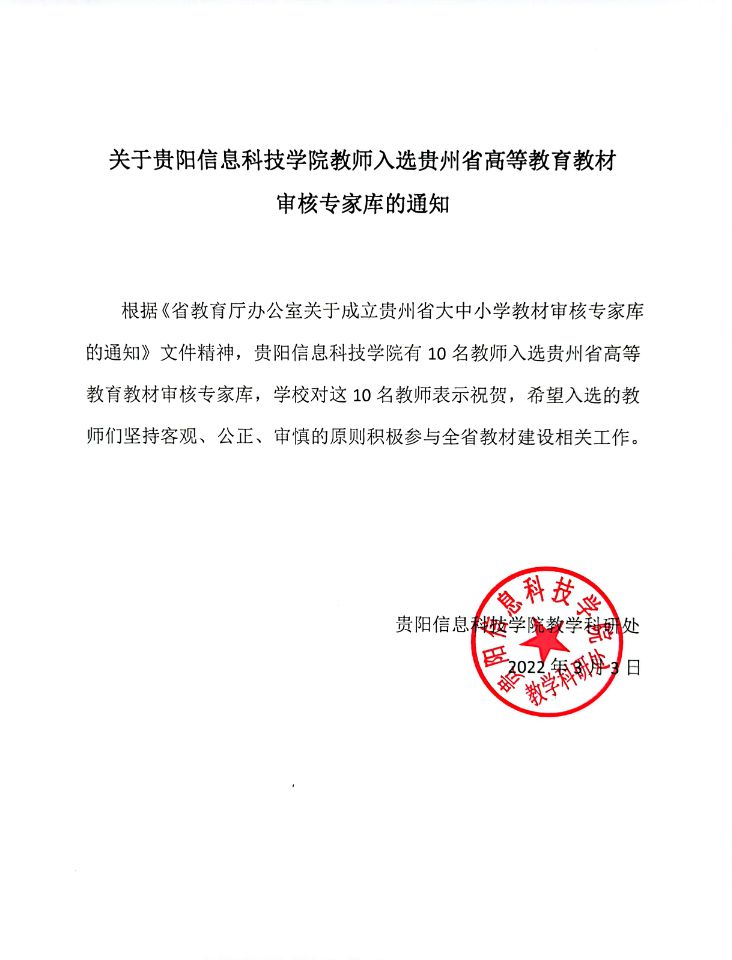 关于Beat365唯一官方网站教师入选贵州省高等教育教材审核专家库的通知