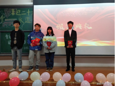 各班团支部依次上台汇报三月份团组织生活情况。智能2102班团支部组织开展学习“十九届六中全会”精神;自动2101班团支部开展文艺节目表演、团体小游戏等活动;电自2101班团支部组织观看爱国影片;工业2102班团支部建立学习小组互帮互助;自动2102班团支部开展团日活动;电自2102班团支部开展“喜迎二十大、永远跟党走、奋进新征程”主题班会。