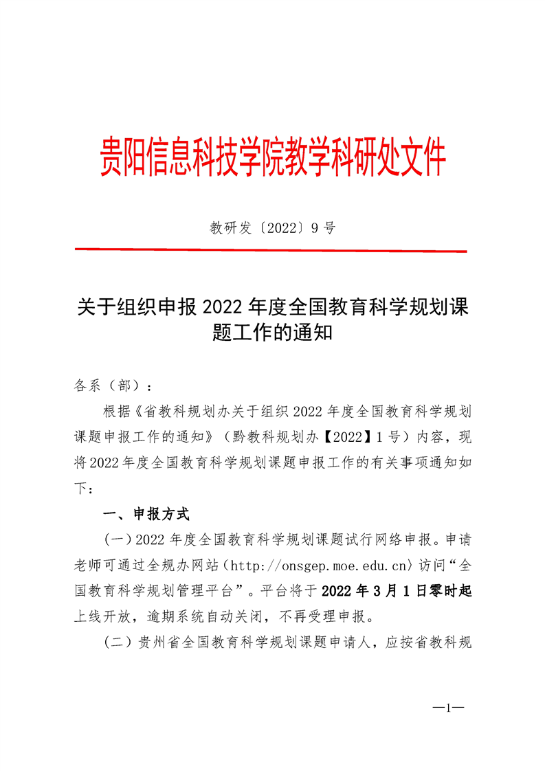 关于组织申报2022年贵州省教育科学规划课题的通知