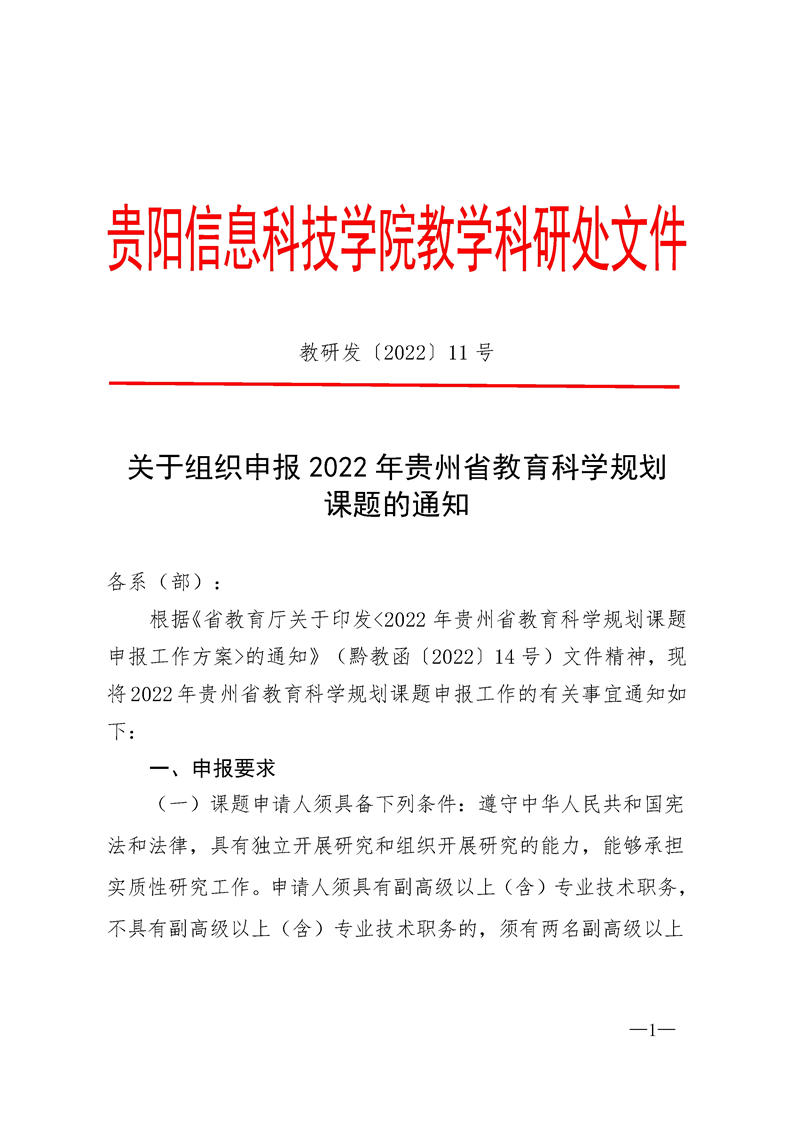 关于组织申报2022年贵州省教育科学规划课题的通知