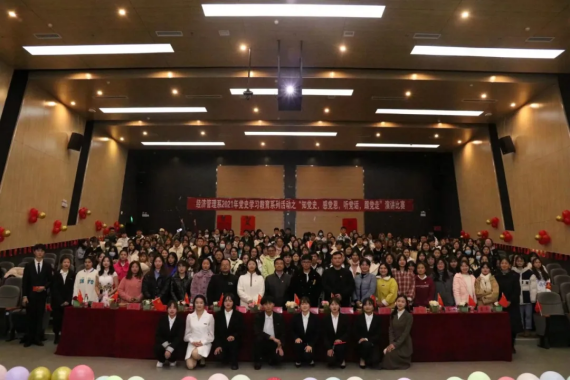 新闻网讯(供稿/供图 谢文强 左恩诺 潘龙娇) 为扎实推进党史学习教育走深走实,广泛开展学习党史、新中国史、改革开放史、社会主义发展史、教育引导广大师生坚定不移跟党走,争做时代新青年的信念,2021年11月29日晚,经济管理系总支委员会在图书馆报告厅举行了2021年党史学习教育系列活动之“知党史,感党恩,听党话,跟党走”的主题演讲比赛特别活动。经济管理系老师和学生共计300人参加本次活动。