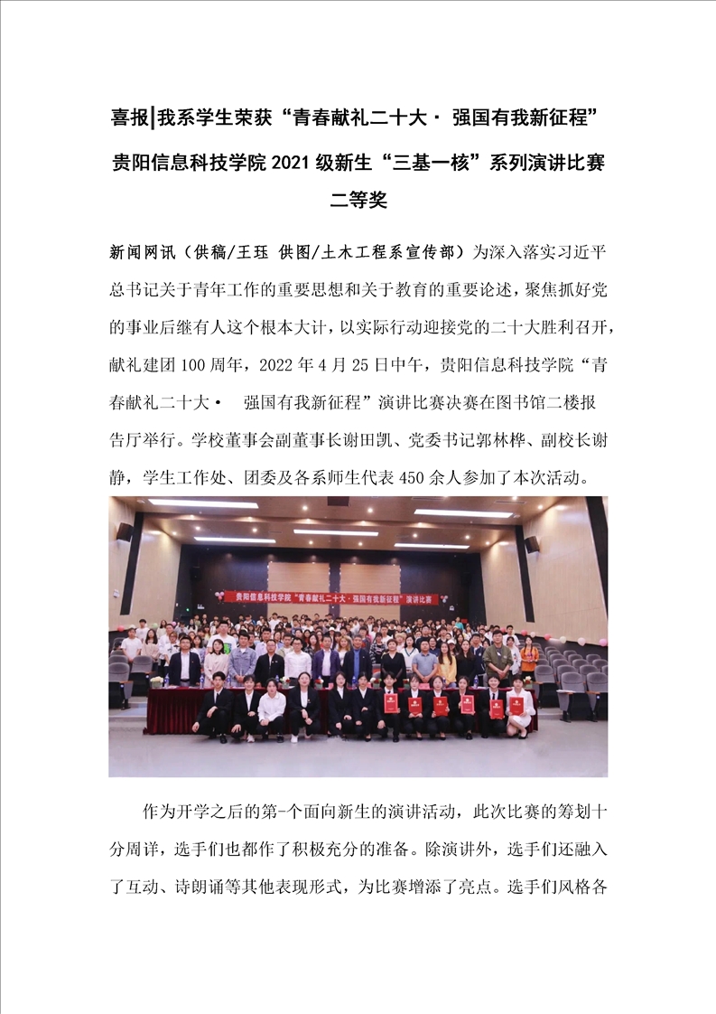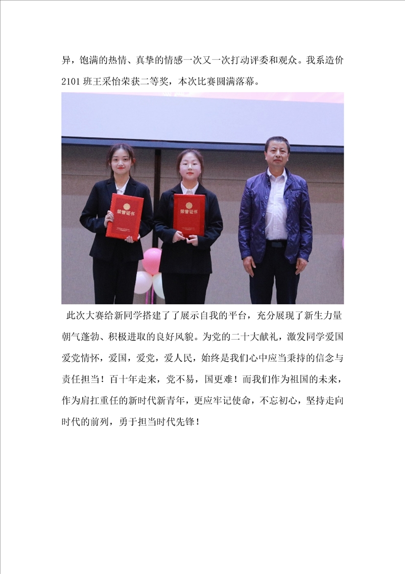 喜报|我系学生荣获“青春献礼二十大· 强国有我新征程”Beat365唯一官方网站2021级新生“三基一核”系列演讲比赛二等奖