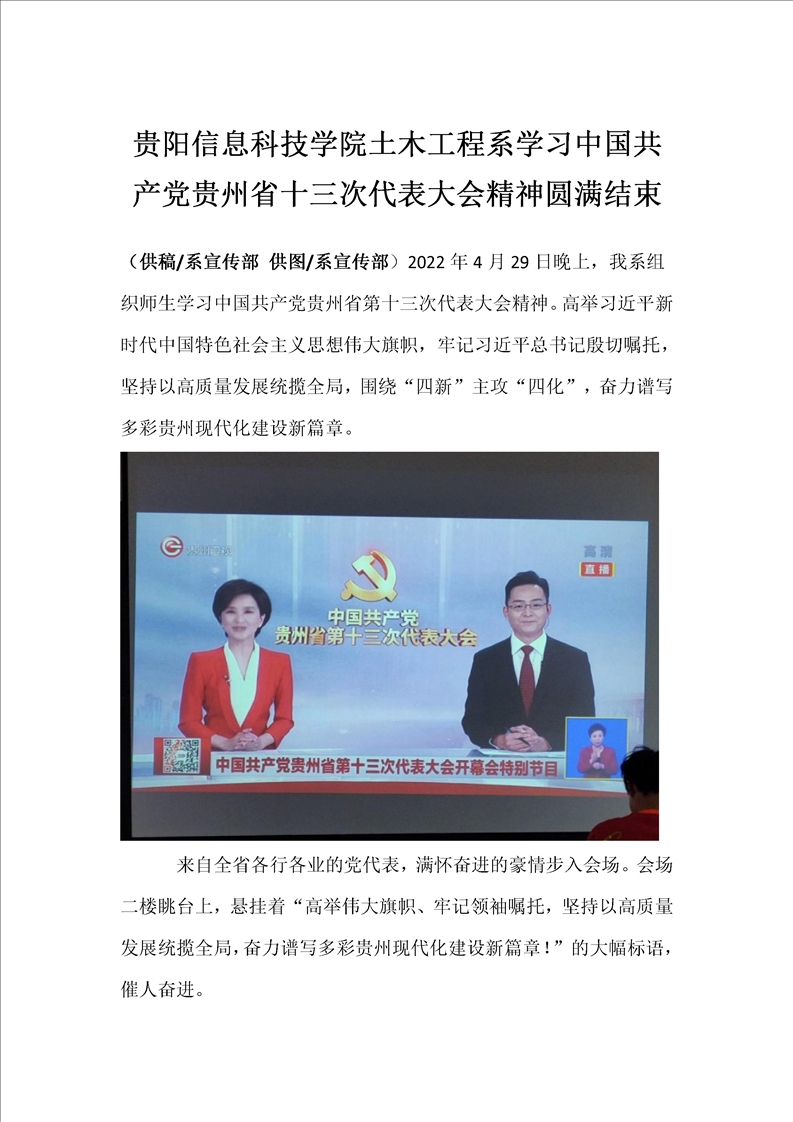 Beat365唯一官方网站土木工程系学习中国共产党贵州省十三次代表大会精神圆满结束